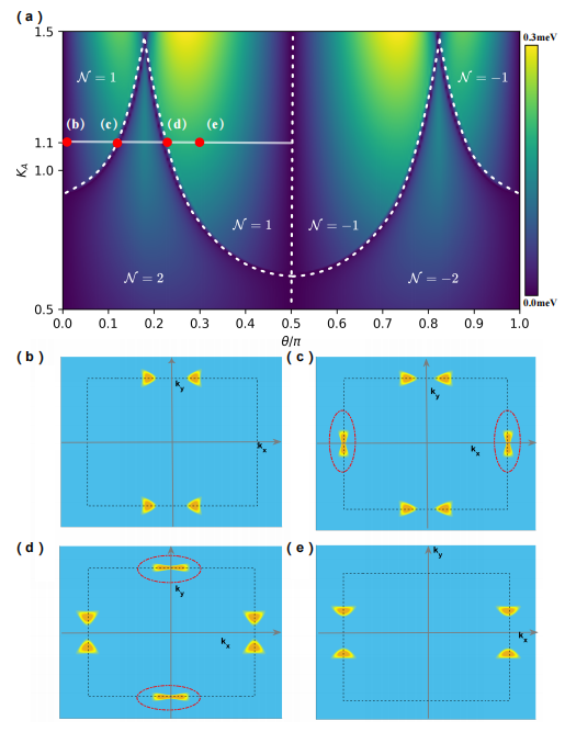 2(a)Floquet手性拓扑超导系统的相图。(b)-(d)椭圆偏振光对能谷对的操控。