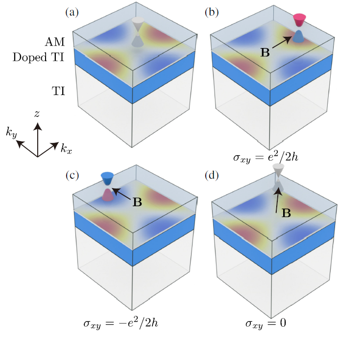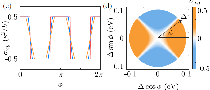图3:d波交错磁体诱导产生交替变化半量子化霍尔电导