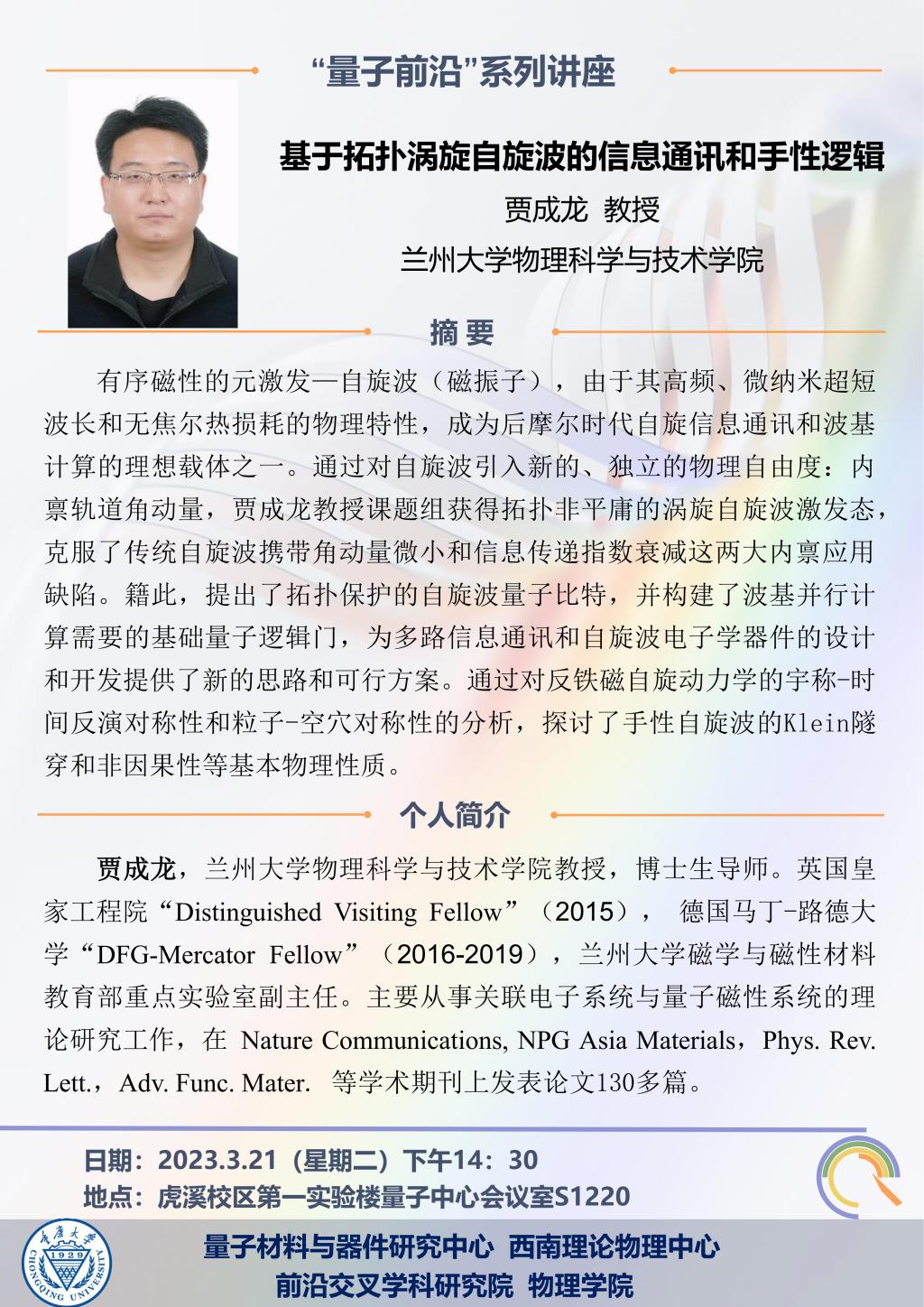西南理论物理中心启动系列报告:基于拓扑涡旋自旋波的信息通讯和手性逻辑