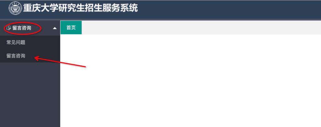 第二步:选择左侧菜单栏“留言咨询”栏目进行留言咨询