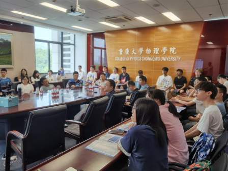 量子材料与器件研究中心的相关老师分别介绍了其科研平台的师资队伍、仪器设备、基金项目、科研经费、学术活动等情况。最后,我院强关联理论团队、低温物理组团队、粒子物理强相互作用理论组团队、光电催化团队、纳米发电机团队、新能源团队、缺陷与计算物理团队、新型光电器件团队分别介绍了本课题组的研究方向、学术成果、团队文化以及学生就业等情况,并鼓励各位同学积极备考。