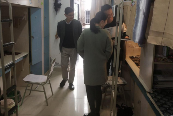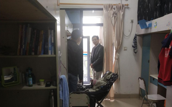 紧接着,余书记来到了大一寝室,大一寝室物品相对不多,显得更加清爽,但有些寝室因为通风不畅,寝室内的空气质量不好,存在异味,余涛老师对这种问题及时指出,督促学生们积极改正问题,进而改善寝室的学习生活环境。
