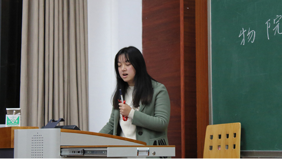 第三位是贺怡学姐,拥有众多竞赛获奖经历的她主要就为什么要参与竞赛,如何选择竞赛,如何对待竞赛,重大对竞赛的态度,学院对竞赛的支持程度等几个方面作了详细介绍,并结合竞赛中贴近生活的趣味小实验为我们展现了一幅幅参与竞赛的生动画面。各种竞赛有趣,实际并不枯燥乏味,拨动着我们的心弦,让我们对竞赛跃跃欲试。