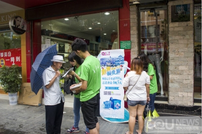 15日,为了让更多的人关注留守儿童和重视留守儿童问题,服务团回到台江县,在县城热闹地段开展了有关留守儿童关心爱护的主题宣传。尽管天空飘着小雨,志愿者们依然不知疲倦的向路人发放宣传册,并耐心地向他们解释留守儿童容易存在的营养、心理和教育问题。