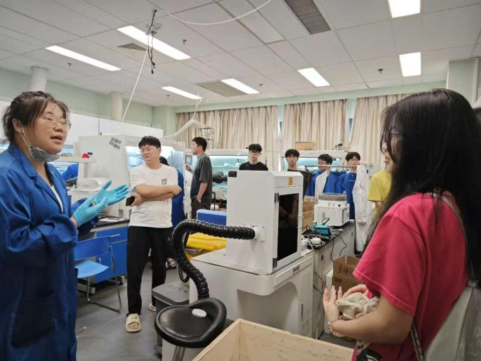 活动伊始,黄映洲老师带领同学们参观了107实验室。黄老师向同学们介绍了拉曼光谱等实验仪器,又了解仪器的基本原理和操作方法以及仪器的应用领域。此外,黄老师还向同学们展示了实验室的部分创新成果,同学们惊叹连连。最后,黄老师向同学们表示只要有想法肯努力,实验室欢迎本科同学进组实习,不断提升自我。