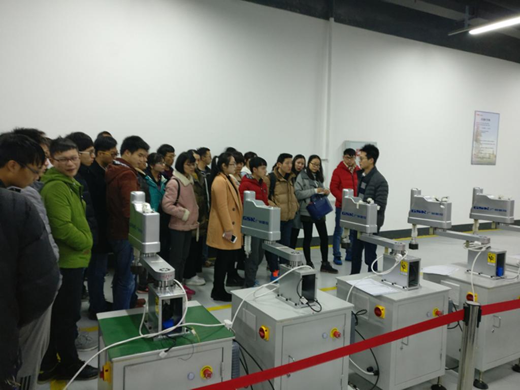 璧山工业园是实习第一站,初次走出象牙塔,踏入社会实践中,学生们对参观单位表露出深深的好奇与兴趣,珍惜来之不易的实习机会,认真参观学习,将理论知识与实践相结合。在凯城科技股份有限公司,相关负责人向同学们介绍了公司的发展、产品以及用人制度,逐渐了解了一个包装盒的具体制作工程,从设计、印刷到贴膜、成型,包含了很多技术。司占超同学在参观后不觉发出这样的感慨:“原来生活中很简单的物品,也可能包含着很高的科技成分。”凤凰湖产业园区是永川工业园区“一区三园”之一,因辖有永川城区“三湖”之一的凤凰湖而得名。在工作人员的命令下,七只身高20公分左右的小机器人跳起了江南style,舞蹈动作丰富且有节奏感,引得同学们如潮好评。通过此次参观,同学们初步了解了智能智造和3D打印技术的发展和相关应用领域,对未来想从事相关工作的同学也起到了帮助。
