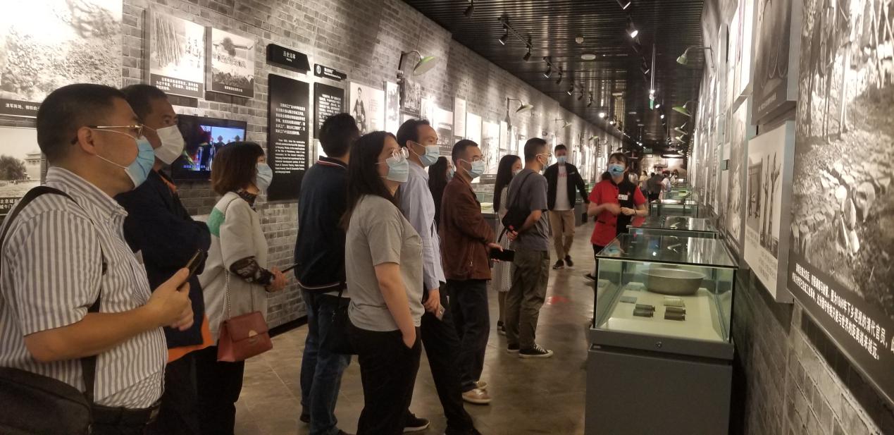 重庆建川博物馆是重庆抗战兵工厂旧址公园的重要主城部分,包含兵工生产防空洞53个,前身为解放前国民政府兵工属第一兵工厂。建川博物馆利用了其中24个防空洞,打造并设立了兵工属第一工厂的厂史物博物馆、抗战文物博物馆、票证生活博物馆、重庆饮食回忆博物馆等8个主题博物馆。活动中,大家认真聆听讲解,仔细端详每一件展品、每一件文物,进一步重温重庆建设兵工厂的历史、发展历程和革命前辈的崇高革命精神和不朽的贡献,感受红色革命情怀。在重庆建川博物馆,随处可见重庆元素。尤其是在重庆故事博物馆,老重庆的一些街市场景、招牌老店,都通过情景再现的方式重现。
