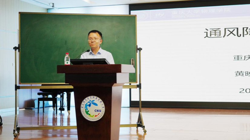 随后,黄映洲教授为同学们带来了题为《通风降噪声学超材料》的科普讲座。黄映洲教授用通俗易懂的语言、生动形象的演示和贴近生活的实例,深入浅出地讲解了声音的基本知识、噪声的危害以及神奇的声学超材料如何实现“通风”与“降噪”看似矛盾功能的巧妙结合。讲座内容前沿而有趣,极大地激发了同学们对声学奥秘的好奇心,现场互动热烈,掌声不断。