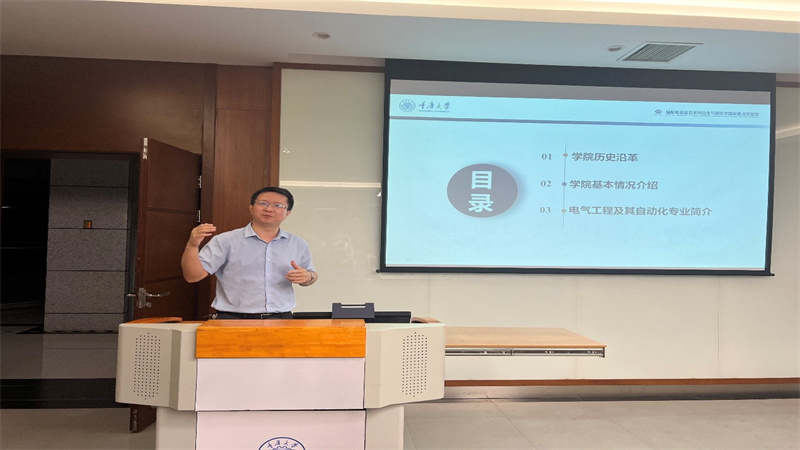 第五位是电气工程学院的张淮清教授,他依次介绍了电气工程学院的学院历史沿革,学院的基本情况,以及电气工程及其自动化专业的简介。他用简洁明了的话语给同学们讲解了何为电气及其自动化,并且指出电力资源是当今使用最广泛的二次能源类型,因而研究内容深厚,未来发展前景依旧广阔。