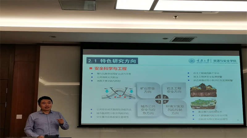 交流会首先由资源与安全学院陈结教授开始介绍。他从学院的概况说起,依次介绍了资源与安全学院的特色研究方向,资源与安全专业的未来发展等激起了在场同学们极大的好奇与兴趣,分享结束后同学们更是提出了许多有趣且极具想象力的问题。