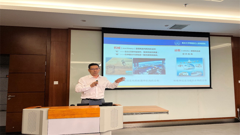 第四位分享的是来自机械与运载工程学院的罗均教授,与他一并出席的还有智能无人系统课题组的蒲华艳教授和其他老师们。罗均教授以机械与运载工程的新兴交叉学科以及大型科研团队的介绍为主要内容,向同学们介绍了高速重载传动与系统团队、机器人核心基础部件团队、高性能智能制造技术与装备团队以及智能无人系统团队等团队的情况。