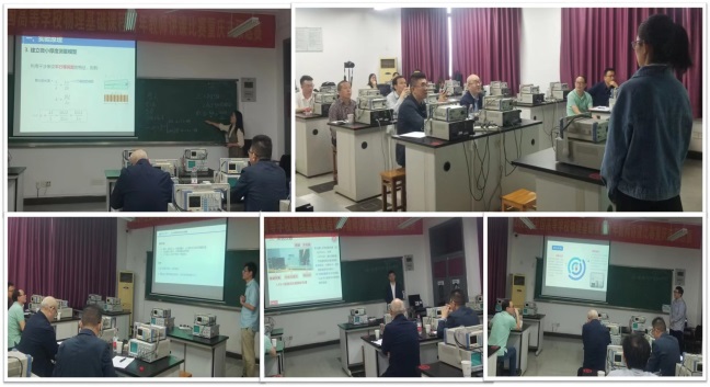 比赛由每位教师讲课15分钟,之后评委提问10分钟。每位参赛教师抑扬顿挫的教学语言、娴熟的教学技巧、丰富详实的教学内容、充满个性亮点的授课方式等展示了他们的教学风采。他们注重教学情境设计,合理运用启发式、探究式等教学方式,深入浅出地讲解知识要点,阐释科学道理,拓展知识深度与宽度,将在场的评委与观摩教师带进了精彩的课堂,留下了深刻的印象。评委们针对实验项目、实验现象与物理原理的联系,与设备调整之间的关系、原则、思路、注意事项以及误差的分析处理等等提出了问题和建议,进行了精彩点评。