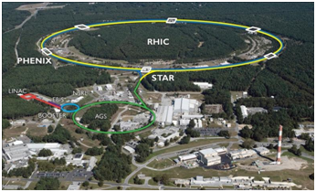 位于美国布鲁克海文国家实验室(BNL)的相对论重离子对撞机(RHIC),周长约3.8公里,可以对撞质子、氘核等轻元素以及氧核、铜核、金核、铀核等重元素,并能够进行碰撞能量(每核子对的质心能量)从低到高扫描(3 GeV - 200 GeV)。STAR是运行在RHIC上的大型综合性实验装置,其主要物理任务之一是研究QGP的性质,以及研究核物质从QGP相到普通强子物质相的转变(QCD相结构)。STAR实验国际合作组已在《Nature》《Science》《Phys. Rev. Lett.》等期刊发表多项重要成果。