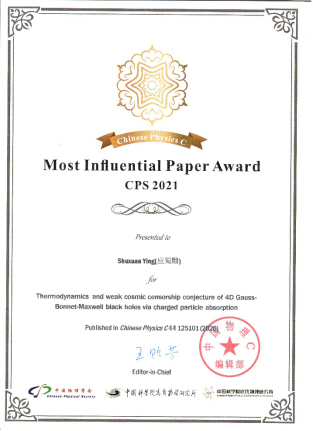 Dr. Shuxuan Ying won the Most Influential Paper Award of Chinese Physics Society in 2021