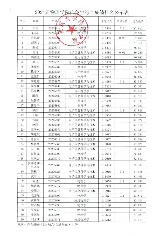 根据学校《关于开展2024年推荐优秀应届本科毕业生免试攻读硕士学位研究生工作的通知》和《性爱影片 本科毕业生推免攻读硕士研究生实施细则》的相关规定,经过报名、初审、公开答辩程序,现将性爱影片 2024年推免生综合成绩排名予以公示: