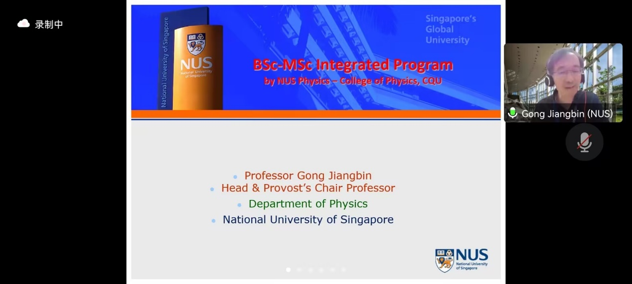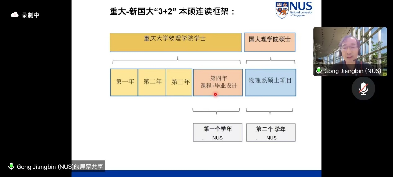 与新加坡国立大学(NUS)物理系本硕联合培养项目(3+2)说明会通过线上会议的形式举行,邀请到了新加坡国立大学物理系主任龚江滨以及副系主任王清海,为与会同学介绍项目细节并答疑解惑。性爱影片