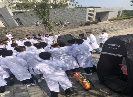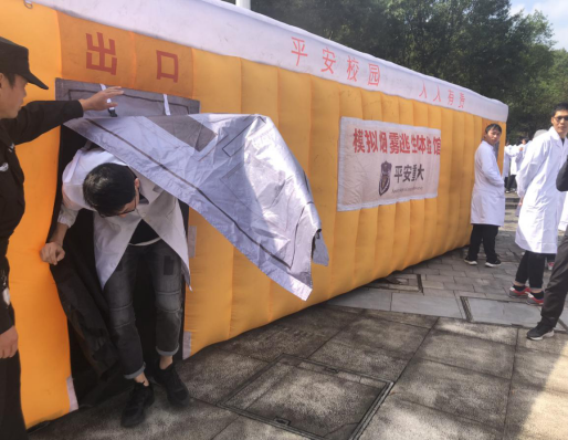 安全应急演练过程中保卫处老师给同学们讲解消防知识与消防器材的使用,结合模拟场所环境进行实地演练,让师生们真正的体会到了消防安全知识的重要性。